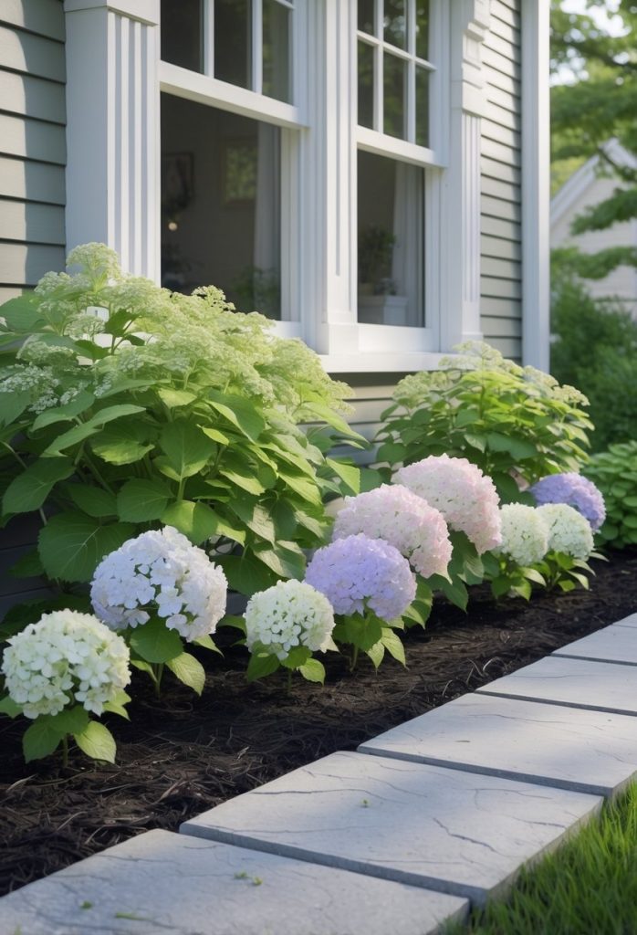 You can place dwarf hydrangeas near windows to add color and charm. These small plants fit well in tight spaces without blocking views.