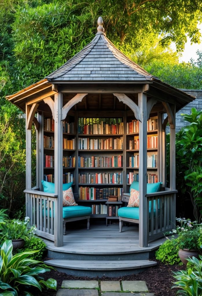 Transform your garden gazebo into a cozy reading retreat. Add weatherproof cushions and a small bookshelf protected from the elements.
