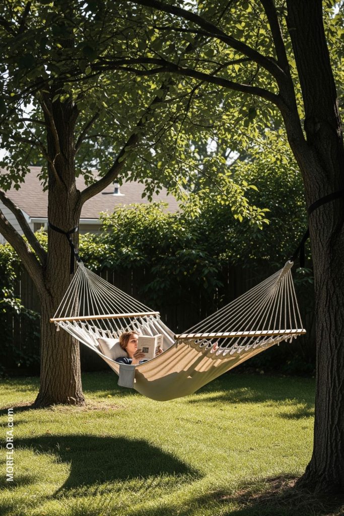 You can create a cozy reading spot by hanging a hammock between two sturdy trees. The gentle sway helps you relax while you read your favorite book.