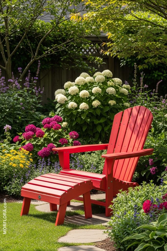 You can create a simple and cozy reading nook with a classic Adirondack chair. Its wide arms and angled back give you good comfort while you relax outdoors.