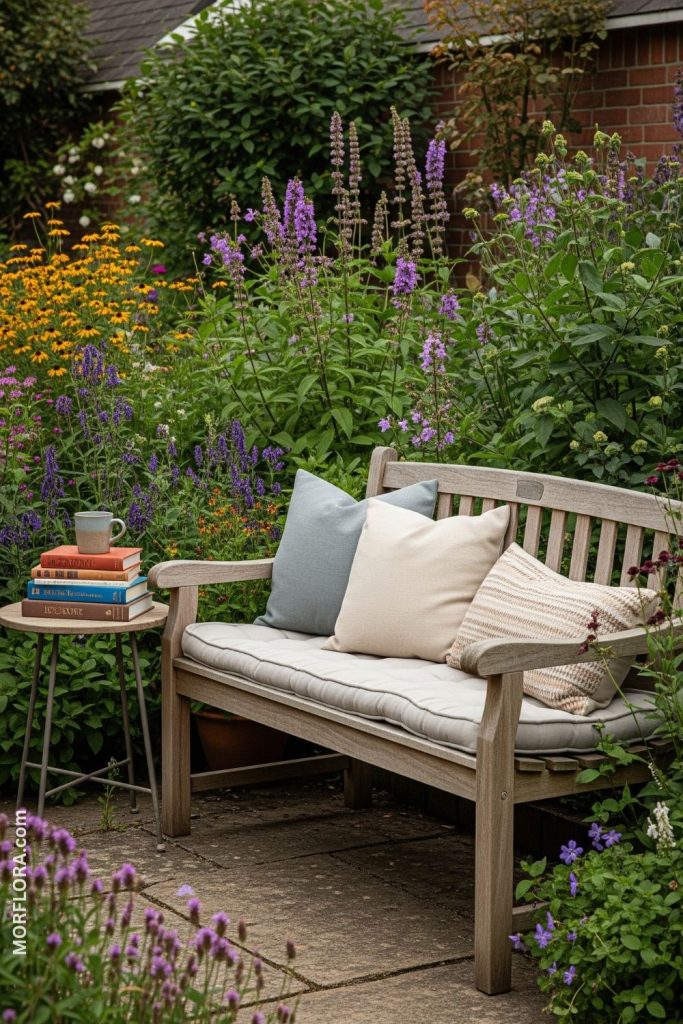 You can create a cozy spot by adding plush cushions to a wooden bench. Soft cushions in weather-resistant fabric make your bench comfy for reading or relaxing.