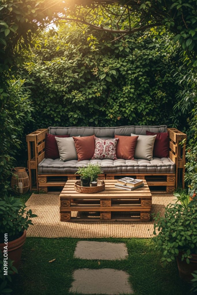 You can make a cozy outdoor sofa using wooden pallets. Just stack them to create a sturdy base and backrest.