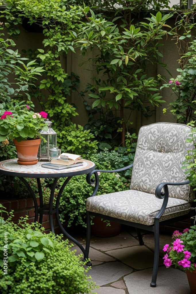 You can create a cozy spot with a small bistro table and a comfy chair. This setup is great for tight spaces and lets you enjoy your book with a drink close by.