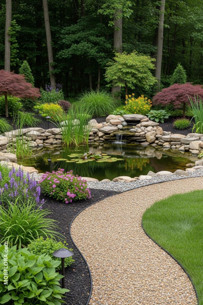 - 20. Pea gravel walkway around a backyard pond