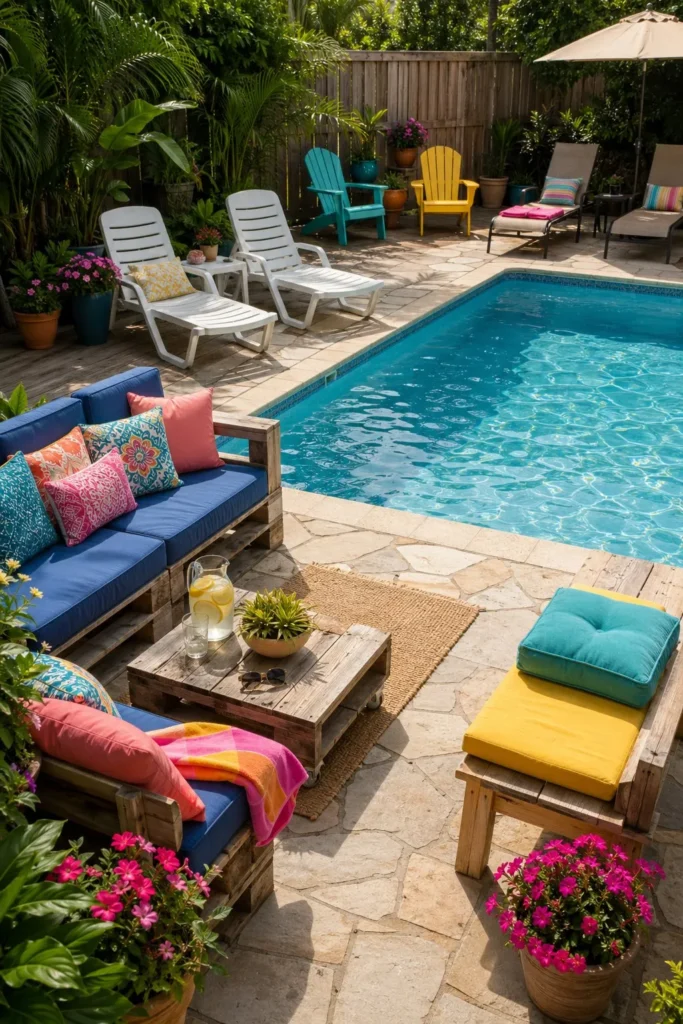 15. Budget-Friendly Outdoor Pool Seating Ideas