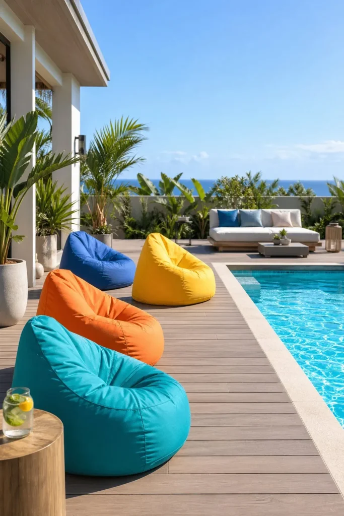 16. Waterproof Bean Bags for Easy Poolside Lounging