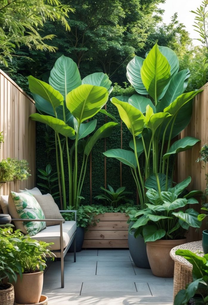 You can use tall elephant ear plants to add privacy in small outdoor spaces. Their large, wide leaves create a natural screen that blocks unwanted views. They grow fast and give your garden a fresh, tropical feel without taking up much room.