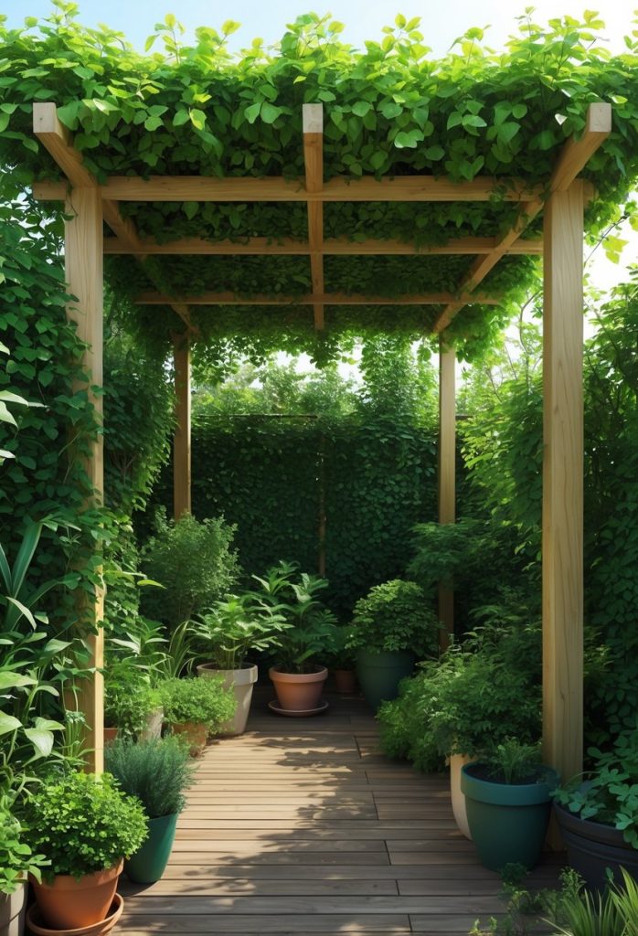 You can grow vines over a simple frame to make a natural roof canopy. This adds shade and privacy without taking up floor space. Vines like trumpet or clematis work well and let some light through for a cozy feel.
