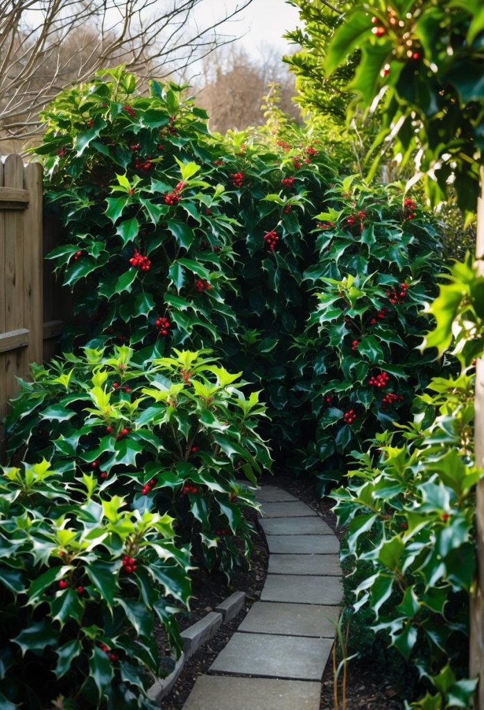 You can use holly bushes to create a thick, green privacy screen in your yard. Their dense leaves block views well and add year-round color. Plant them close together to form a natural barrier that also looks nice. Holly bushes are easy to shape and grow fast for small spaces.