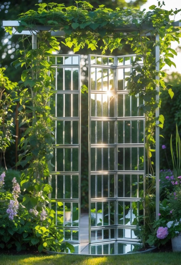You can add mirrors to a trellis to make it shine and catch the light. This helps brighten your garden by bouncing sunlight around. It also gives your plants a pretty, sparkling background. A mirrored trellis can make your outdoor space feel fresher and more lively.