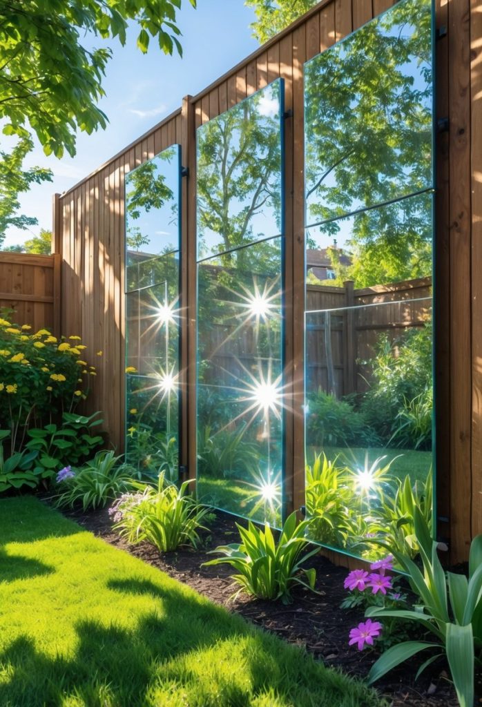 6. Hang outdoor glass or mirrored panels on fences for brightness