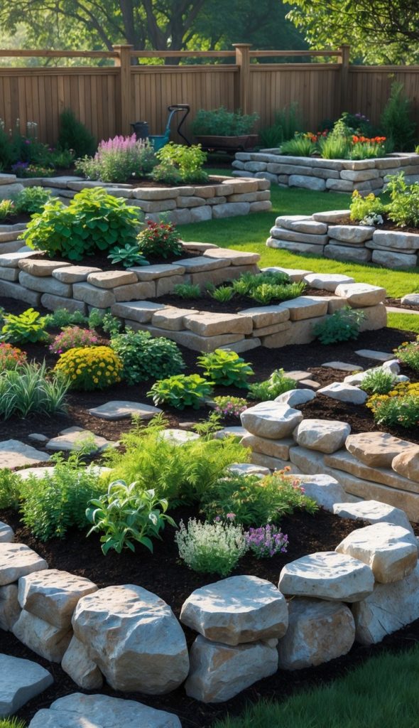 You can create raised rock garden beds to add height and texture to your yard. These beds hold soil well and make it easier to grow flowers or herbs. Raised beds also help keep your garden neat and are simple to maintain.