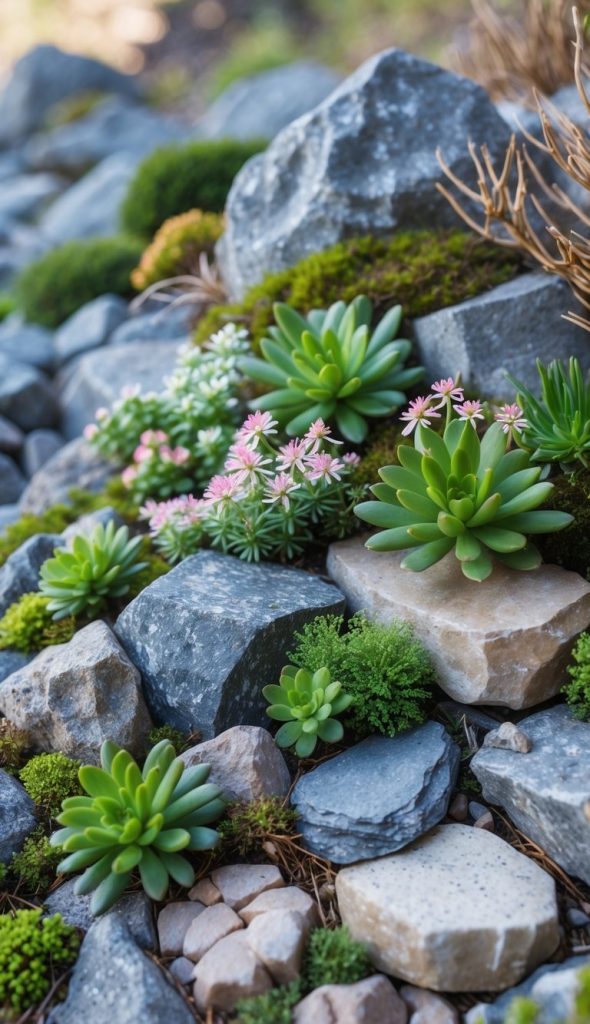 They help fill gaps and add green texture to your rock garden. This makes your space feel fresh and natural.