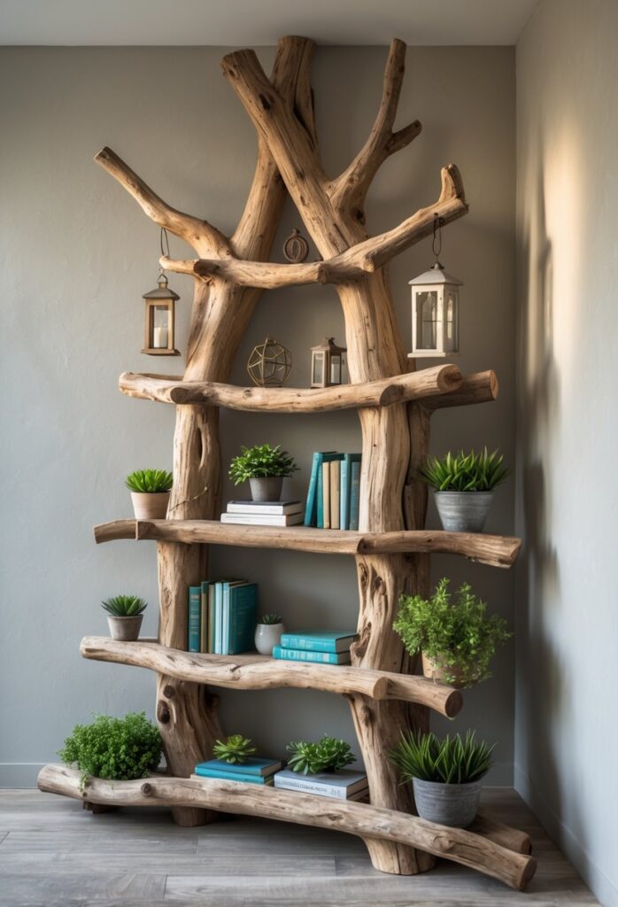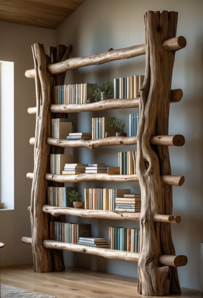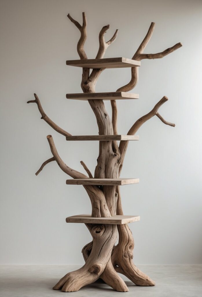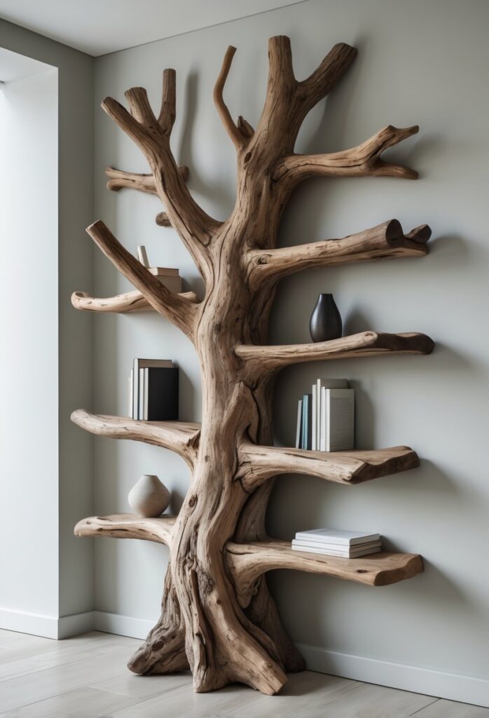 11 Rustic Driftwood Tree Bookshelf Ideas to Warm Up Your Living Space