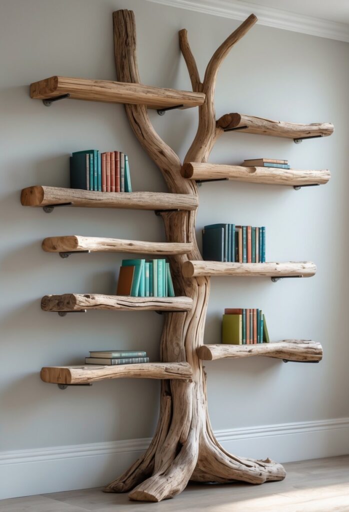 If you love nature-inspired decor, driftwood tree bookshelves can bring a warm and rustic feel to your space. These shelves combine the natural beauty of wood with practical storage, making them both charming and useful for your home.