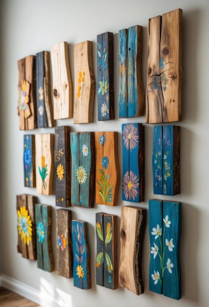 You can turn scrap wood into beautiful hand-painted art pieces. Start by sanding the wood well to create a smooth surface. Then, use your favorite colors and brushes to make designs that fit your style.