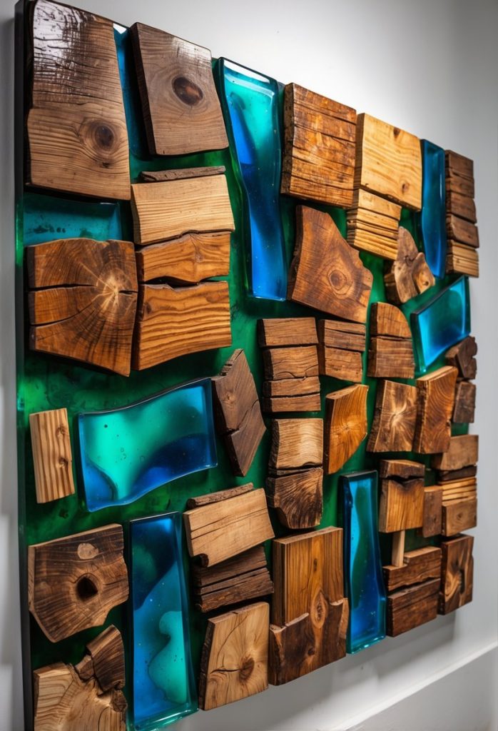You can create beautiful wall art by combining scrap wood with colorful resin. This mix gives your piece a modern look while keeping a natural feel.