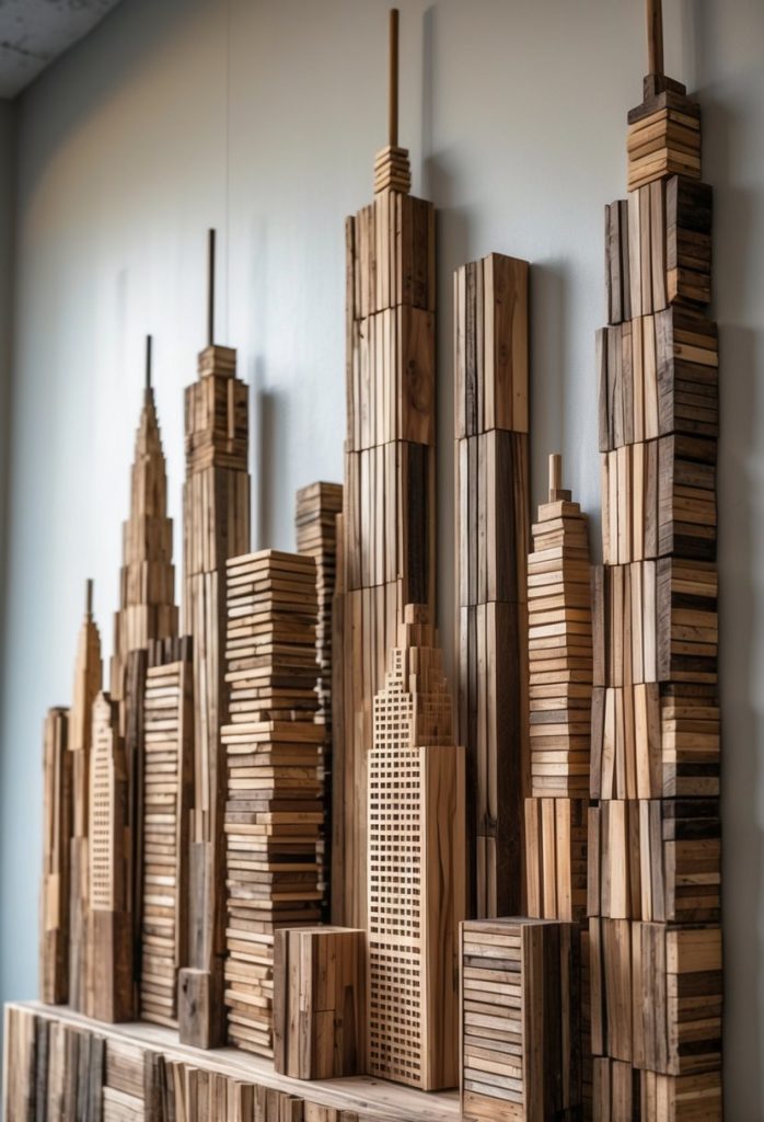 14. Recycled wood city skyline