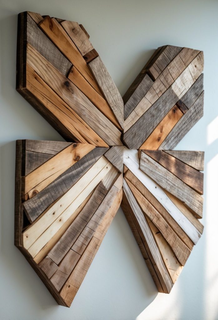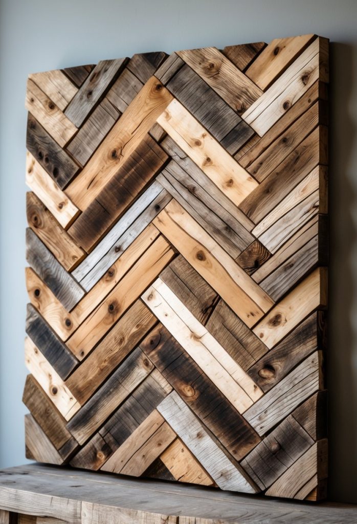 You can create chevron wall art using scrap wood cut into angled pieces. Arrange the wood in a repeating V-shape pattern to make a simple but eye-catching design.