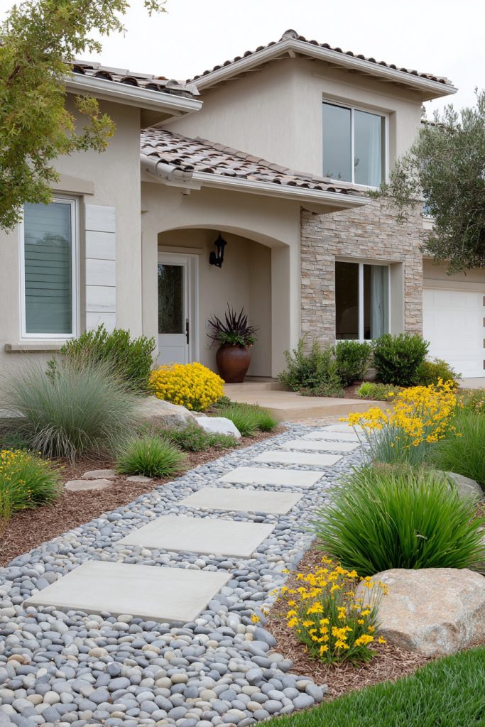 You can create a beautiful front yard by using drought-tolerant plants with stones. These plants need less water, saving you time and money.