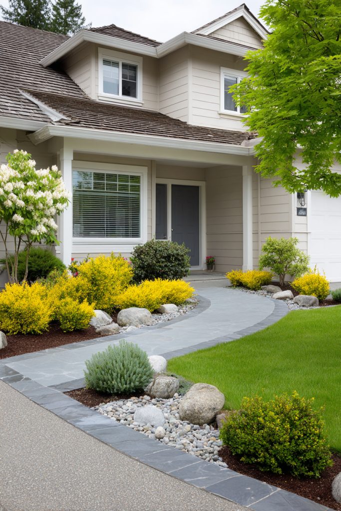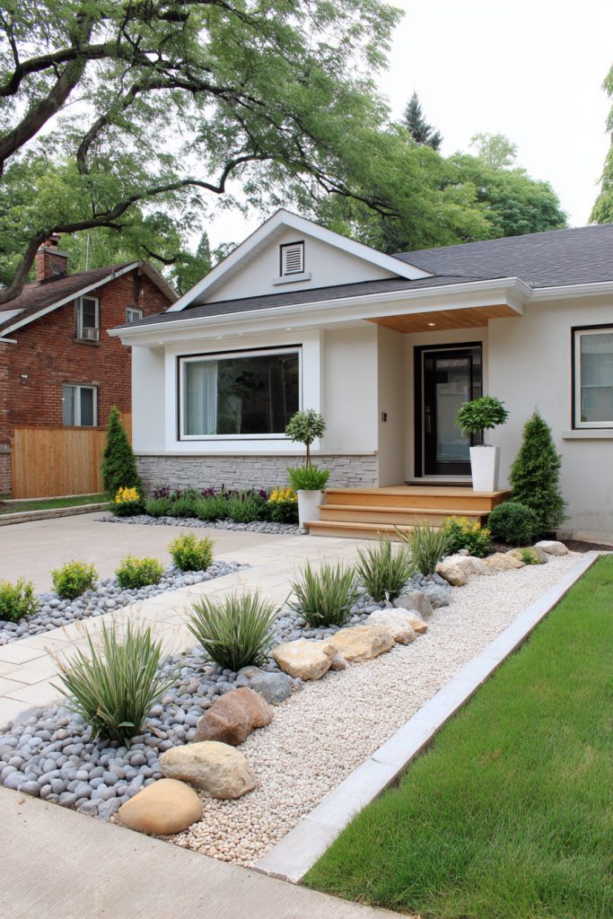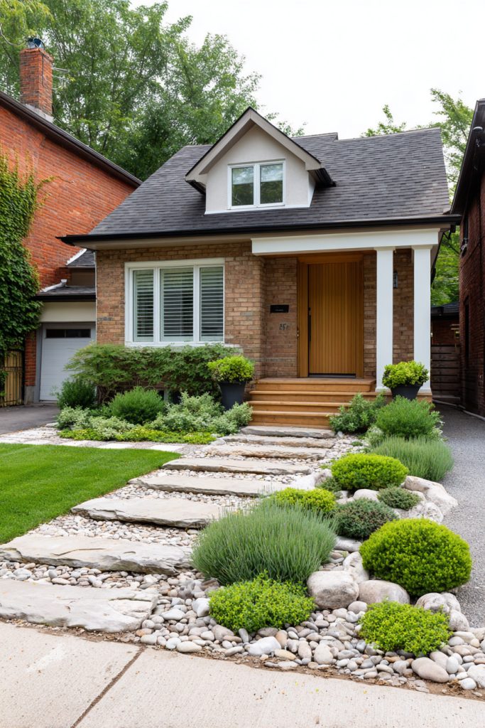 Stones are an easy and low-maintenance option to improve your small front yard’s curb appeal while making it functional and attractive. They work well with different plants and styles, giving you lots of ways to design your small garden just how you like.