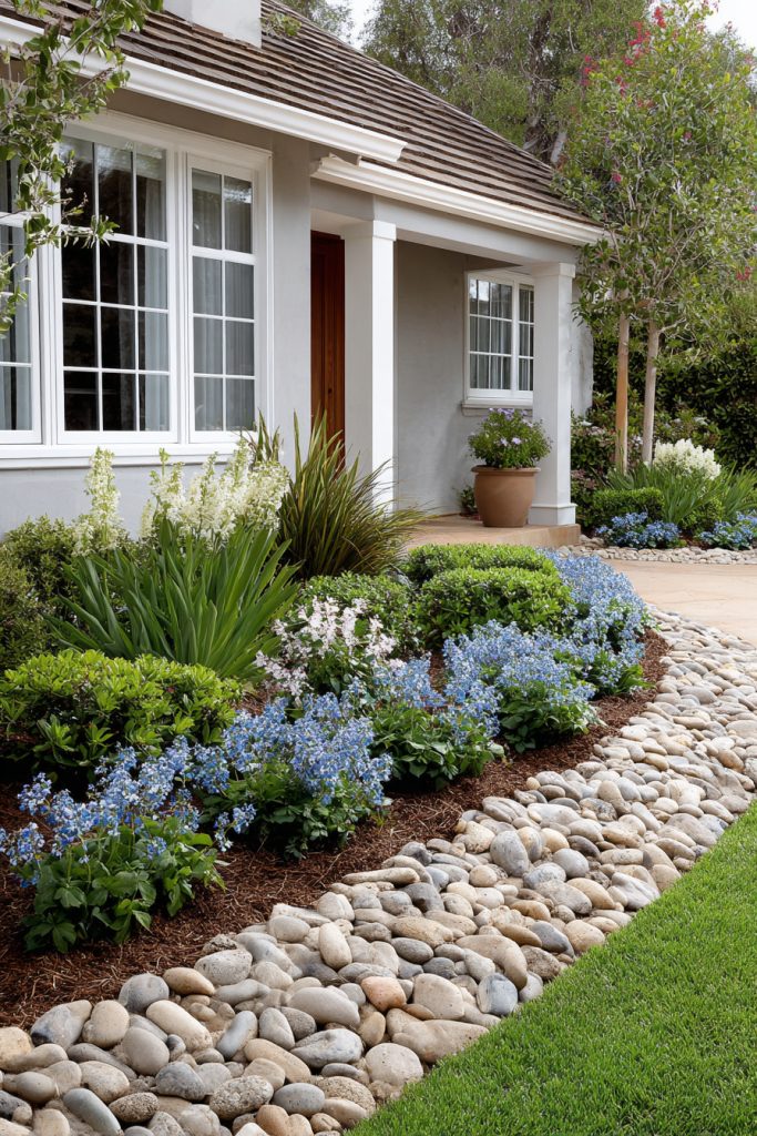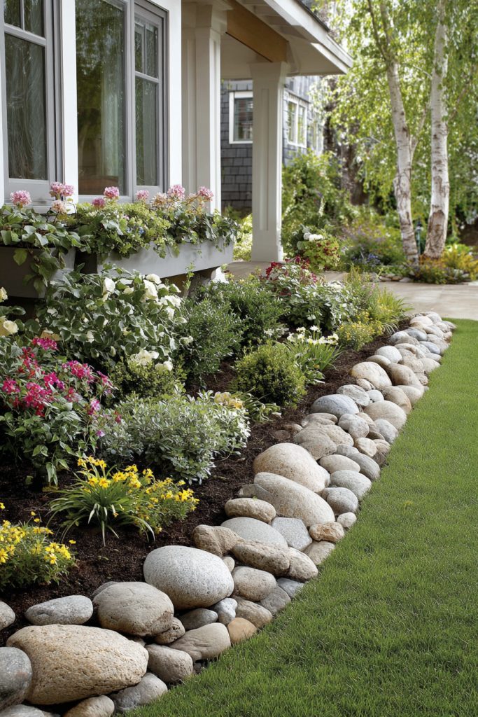 Pebble edges are easy to install and add a clean, natural look. Choose stones that match your home’s style for a nice touch.