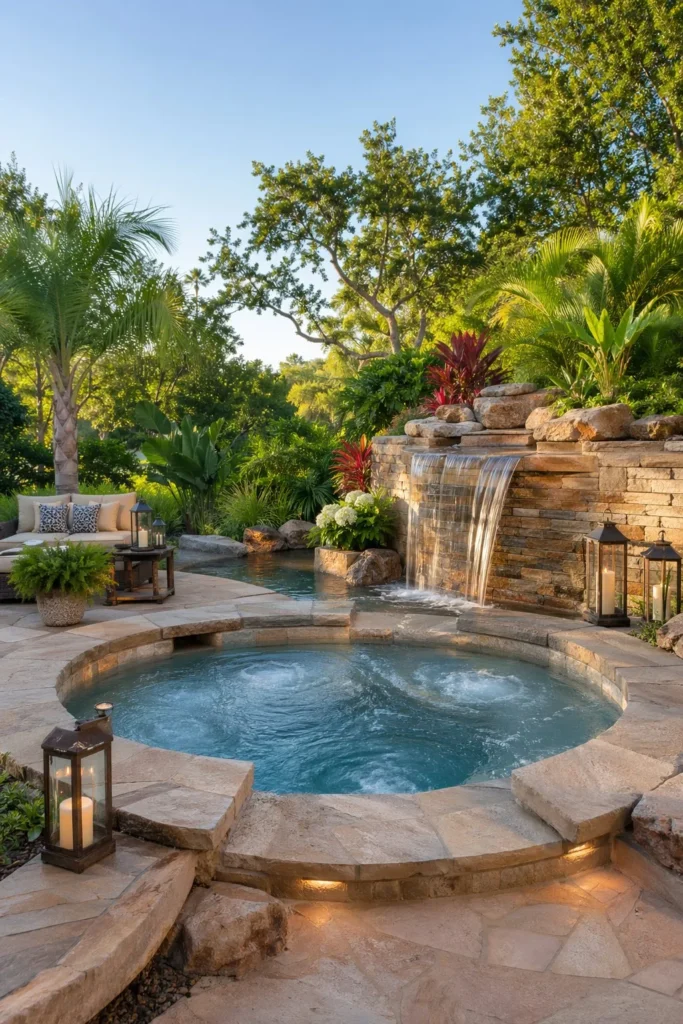 14. Built-In Spa with a Waterfall Feature