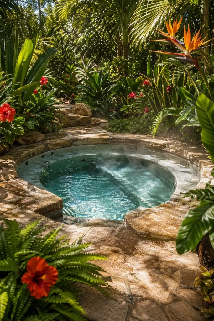 17. Sunken Jacuzzi in a Tropical Garden Setting