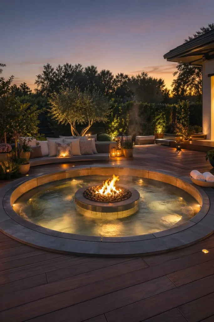 • 7. Sunken Hot Tub with an Integrated Fire Pit
