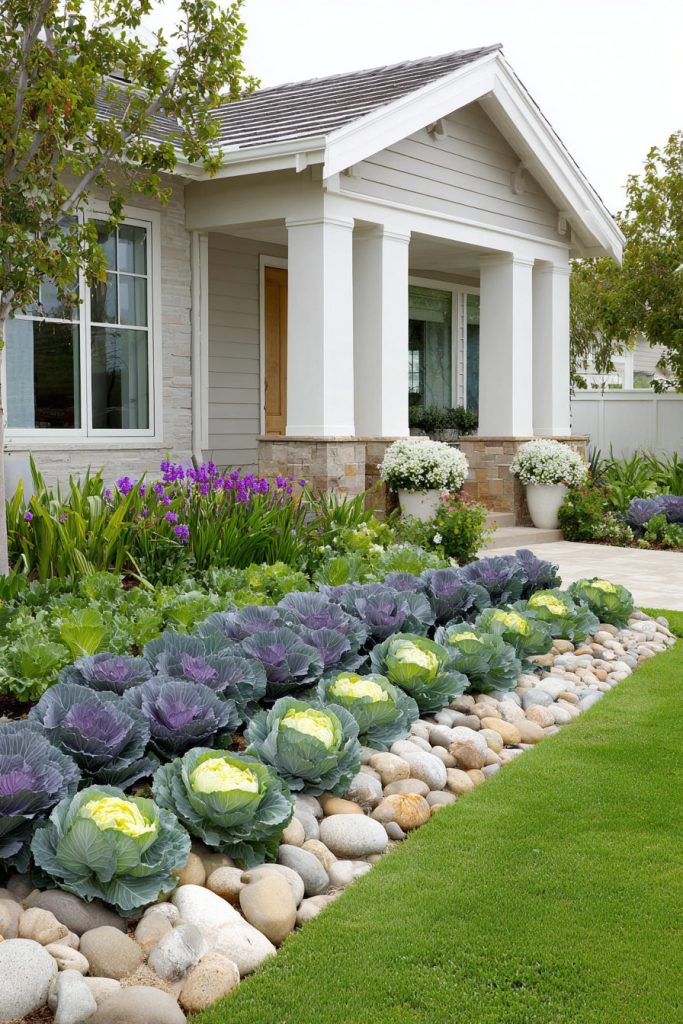 You can add bright colors and interesting textures to your front yard with ornamental kale and cabbage. They do well in the cooler months and keep your garden looking lively when other plants start to fade.