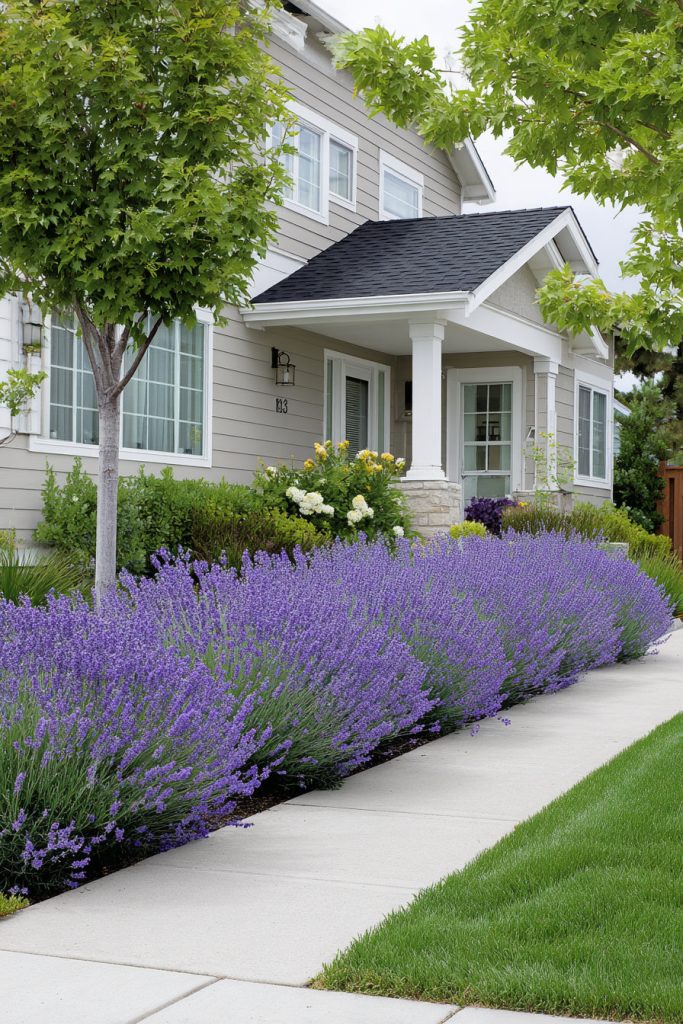 You can line your walkway with lavender to add a soft, pleasant scent every time you step outside. Lavender’s purple flowers also create a calm, pretty look that welcomes guests.
