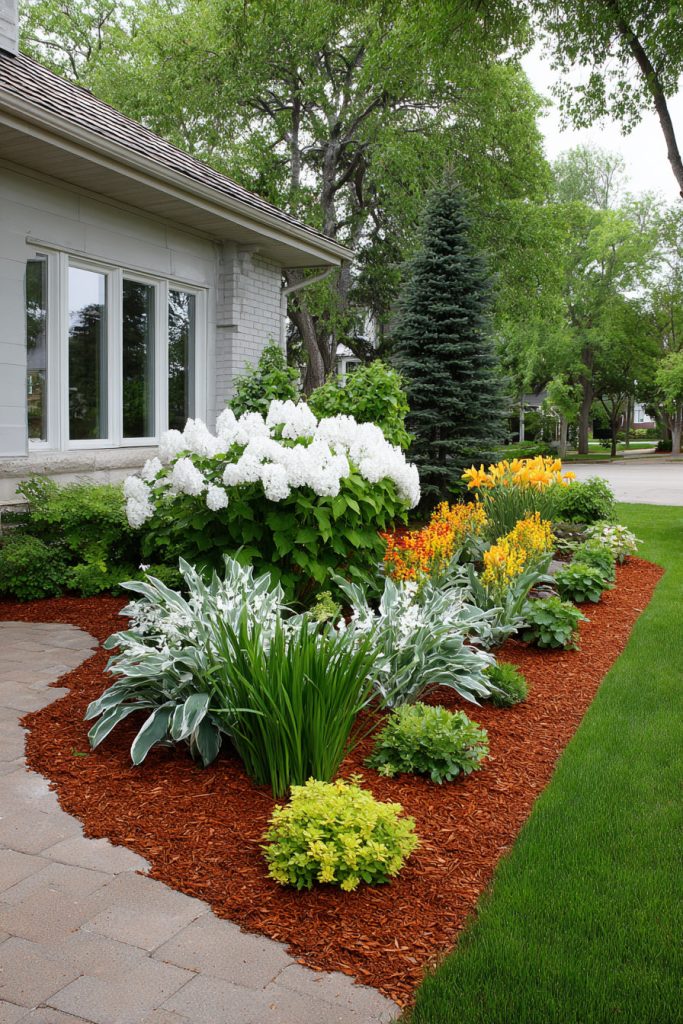 This helps draw attention to flower beds and other garden areas. It also makes your front yard look unique and fresh. Plus, mulch helps keep soil moist and controls weeds.