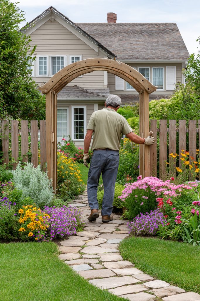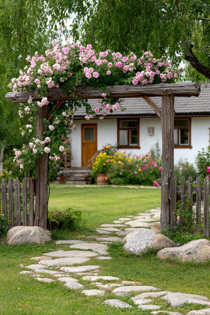 Consider growing climbing plants like roses or jasmine on it. This adds greenery and color while giving your path a charming look.