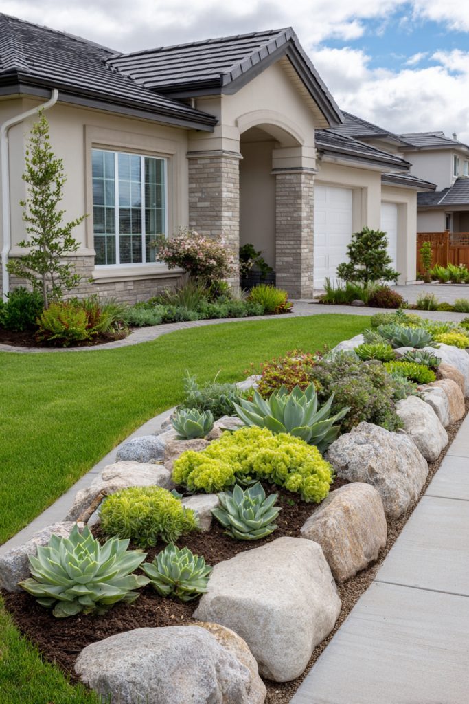 You can brighten your front yard by planting colorful succulents in garden beds. These plants need little water and care, making them great if you want an easy garden.