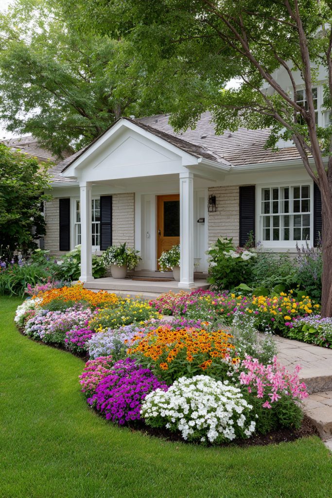 You can add depth to your front yard by creating a tiered flower bed. This design uses different levels to show off both annuals and perennials. The annuals bring bursts of color for the season, while perennials add lasting texture and shape.