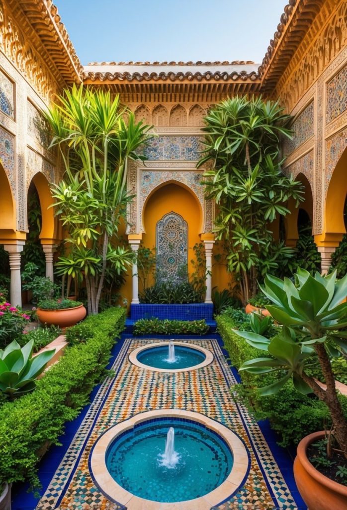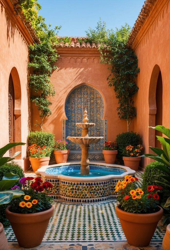 Moroccan courtyards turn ordinary spaces into enchanting retreats. You can transform your patio or garden into a tranquil oasis with this style.
