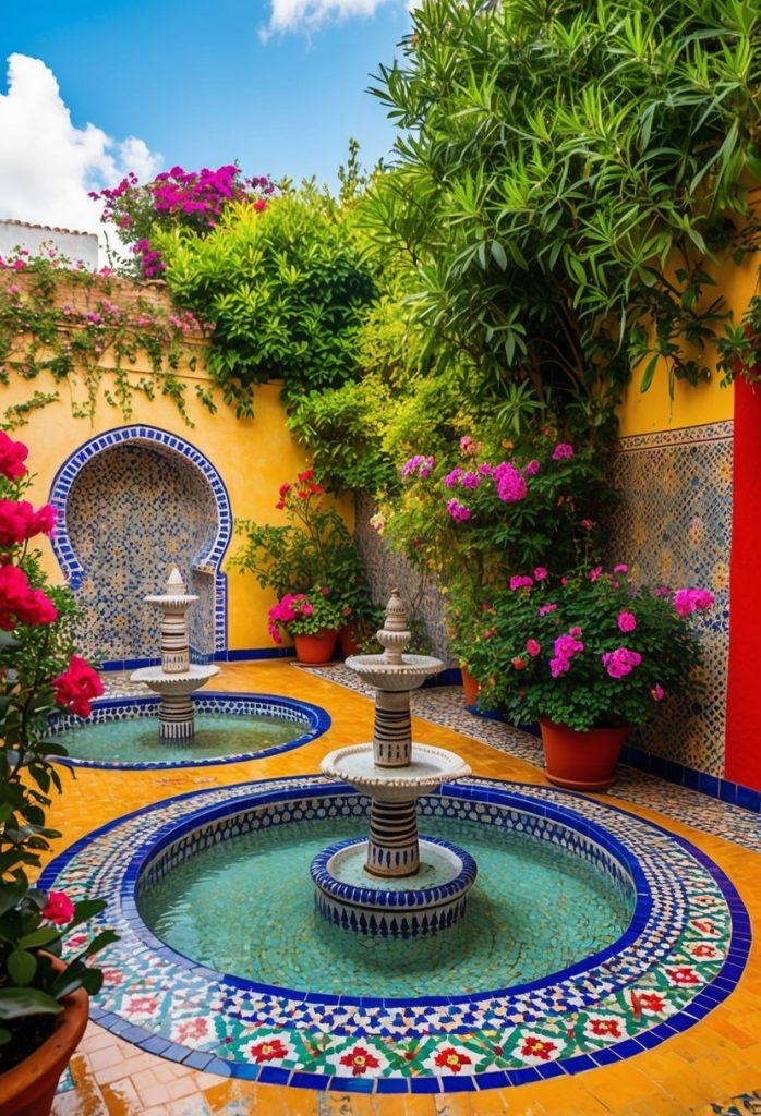 Water features are perfect for Moroccan gardens. They help beat the heat and add a peaceful feeling to your space.
