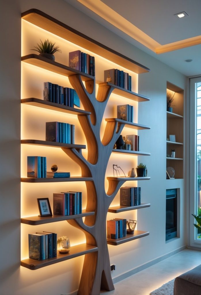 - 5. Wall-Mounted Tree Bookshelf with LED Lighting