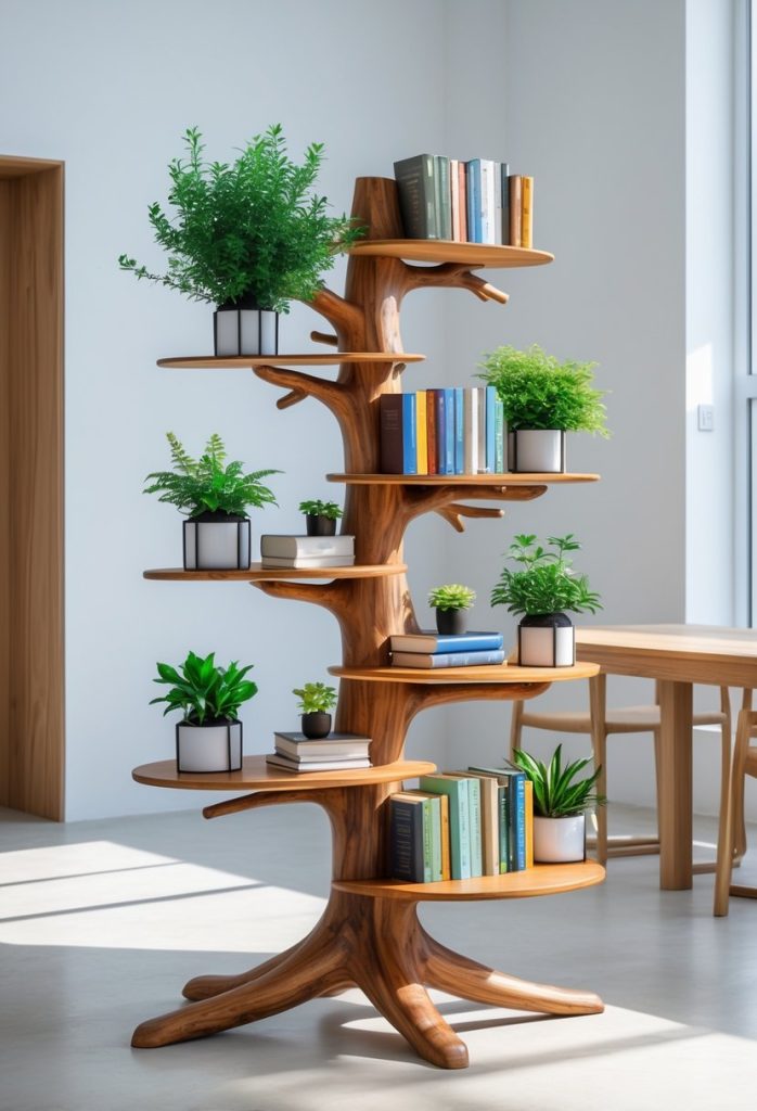 - 7. Multi-Tier Tree Bookshelf with Plant Holders