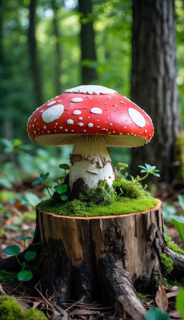 You can paint your tree stump to look like a fun mushroom. Use red paint for the cap and white for the spots to make it bright and cheerful. This idea adds a playful touch to your garden and is simple to do with just a few paints.