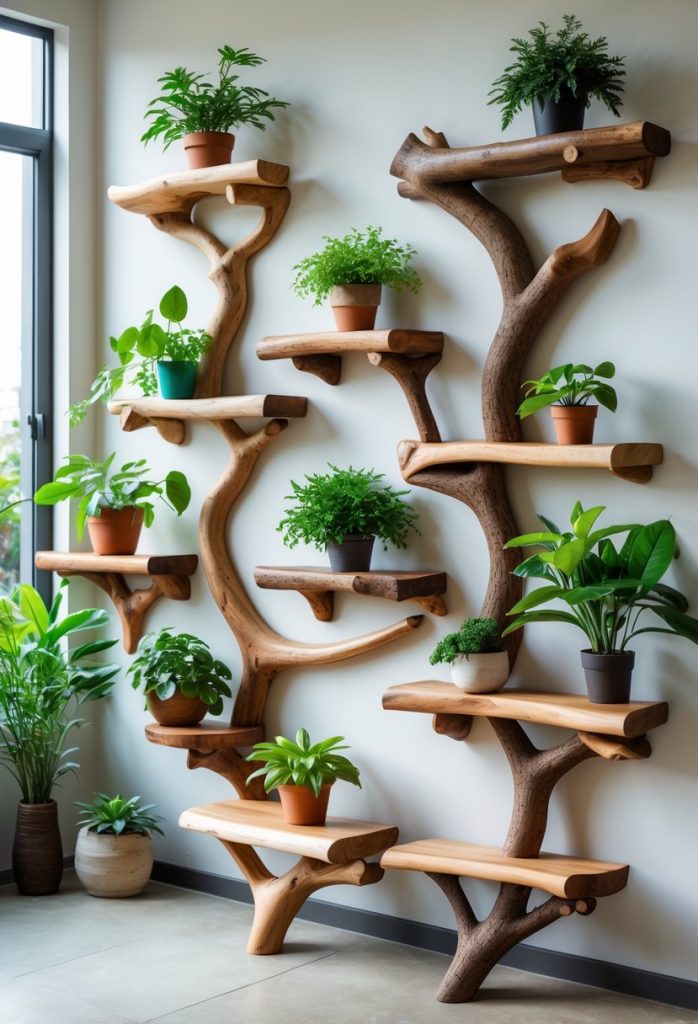 You can create a multi-branch shelf by mounting several branches together on your wall. This gives you lots of space to display plants in a natural, beautiful way.