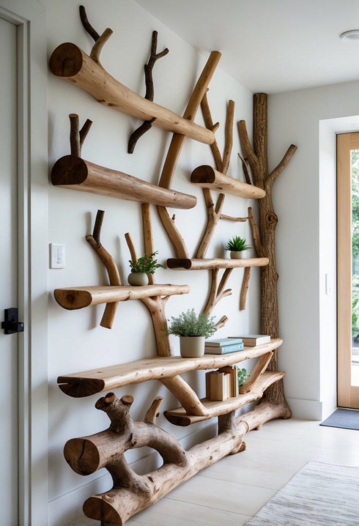 If you want to add a natural touch to your home, tree branch shelves can do just that. These shelves bring a mix of rustic charm and useful storage into any space.