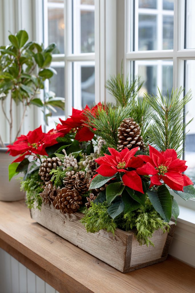 This simple mix makes your window box festive and elegant without much effort. It is perfect if you want a clean, fresh style.